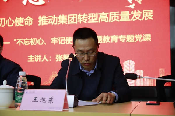 根據(jù)中央、省市委、區(qū)黨工委開展“不忘初心、牢記使命”主題教育的部署安排,11月22日下午,鹽城東方集團(tuán)黨委書記、集團(tuán)主題教育領(lǐng)導(dǎo)小組組長(zhǎng)張振國(guó)同志圍繞《堅(jiān)持國(guó)企初心使命、推動(dòng)集團(tuán)轉(zhuǎn)型高質(zhì)量發(fā)展》主題,給集團(tuán)全體黨員干部上了一堂既生動(dòng)又深刻的專題黨課。集團(tuán)黨委副書記、常務(wù)副組長(zhǎng)王旭東主持黨課。區(qū)黨工委主題教育第三指導(dǎo)組成員吳坤陽(yáng)到會(huì)指導(dǎo)。