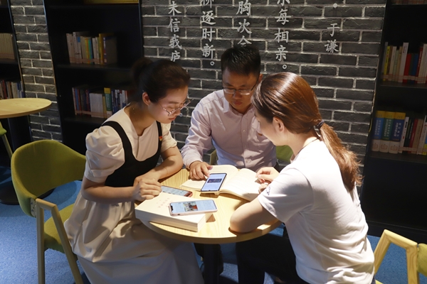 在工作之余,集團(tuán)二樓職工閱讀角成為了黨員們讀書(shū)學(xué)習(xí)的場(chǎng)所,上線參與答題,一起研究題目、分享答題技巧、交流挑戰(zhàn)心得,感受“書(shū)香氣”,答好“強(qiáng)國(guó)題”。在學(xué)習(xí)獲得知識(shí),在打卡中增進(jìn)交流,在潛移默化中提升黨員的政治素養(yǎng)。讓線上學(xué)習(xí)成為一種常態(tài),線下學(xué)習(xí)融入日常生活。