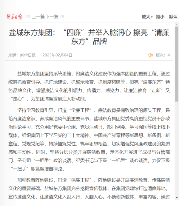 鹽城東方集團(tuán)堅持系統(tǒng)思維,將廉潔文化建設(shè)作為強(qiáng)本固基的重要工程,通過統(tǒng)籌抓教育引導(dǎo)、抓陣地建設(shè)、抓警示教育、抓制度構(gòu)建等,擦亮“清廉東方”特色品牌文化,增強(qiáng)廉潔文化的引領(lǐng)力、傳播力、感染力,讓廉潔教育“走新”又“走心”,為集團(tuán)清廉發(fā)展注入新動能。