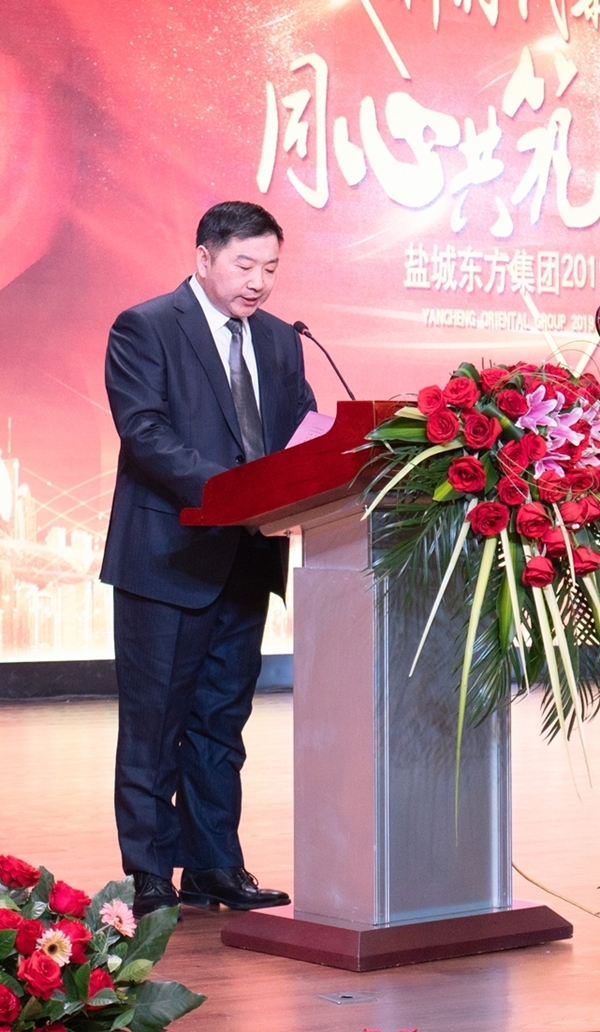 鹽城東方集團黨委書記、董事長張振國發(fā)表新年致辭。