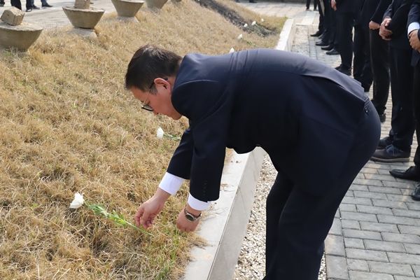 集團副總經(jīng)理吳將在致悼詞時說,在長期的革命戰(zhàn)爭和社會主義建設年代,無數(shù)先烈用他們的鮮血和生命,譜寫了一曲曲英雄贊歌,豎立了一座座不朽豐碑,留下了一筆筆寶貴精神財富。英雄不死,他們將彪炳史冊、浩氣長存;他們將萬古流芳、永垂青史。我們繼承革命先烈的遺志,高舉習近平新時代中國特色社會主義思想偉大旗幟,在區(qū)黨工委、管委會的堅強領導下,積極融入全區(qū)產(chǎn)城融合綠色發(fā)展示范區(qū)建設戰(zhàn)略大局,按照“創(chuàng)塑全市國有平臺轉型升級品牌”的高標準追求,制定爭先目標,找準發(fā)展路徑,激發(fā)內(nèi)生動力。