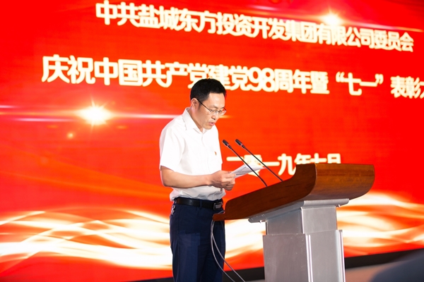 為充分發(fā)揮先進典型的示范表率作用,更好地將“不忘初心、牢記使命”主題教育引向深入,激勵各級黨組織和全體共產(chǎn)黨員更加自覺地踐行先進性要求,7月1日下午,鹽城東方集團在國際會展中心召開慶祝中國共產(chǎn)黨建黨98周年暨“七一”表彰大會。會上,全體員工合唱國歌,東方集團黨委書記、董事長張振國作了講話,現(xiàn)場授予10名同志“優(yōu)秀共產(chǎn)黨員”稱號,授予3名同志“優(yōu)秀黨務(wù)工作者”稱號,授予5個“共產(chǎn)黨員示范崗”稱號,授予3個基層黨組織“先進基層黨組織”稱號。