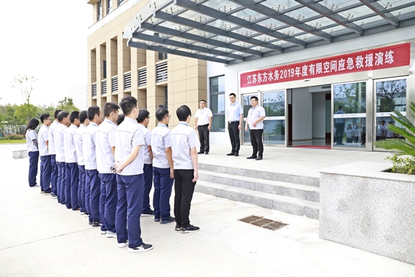 為了使東方水務(wù)公司全體員工了解有限空間作業(yè)管理,預(yù)防和控制中毒窒息等生產(chǎn)安全事故發(fā)生、切實保護(hù)作業(yè)人員的生命安全,6月26日上午,東方水務(wù)公司舉行了2019年度有限空間應(yīng)急救援演練活動。