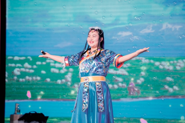 高亢的音調(diào)、寬廣的境界,宛如高原的壯闊無(wú)垠。沈奇燕演唱的《高原藍(lán)》生動(dòng)地塑造了草原上方湛藍(lán)的天、潔白的云、綻紅的霞。