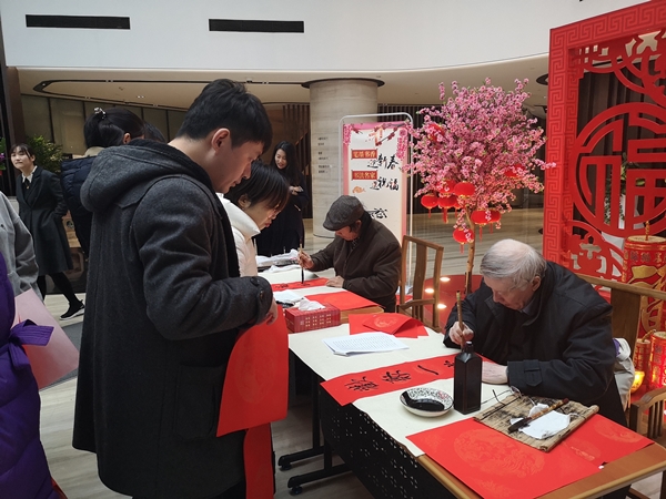 為弘揚(yáng)傳統(tǒng)文化、喜迎新春佳節(jié),共同在新春來臨之際烘托節(jié)日氛圍,特邀民盟上海市委書法家劉祖樑、徐谷甫老師親臨金融街(靜安)中心,為項(xiàng)目商辦業(yè)戶書寫春聯(lián)、福字。
