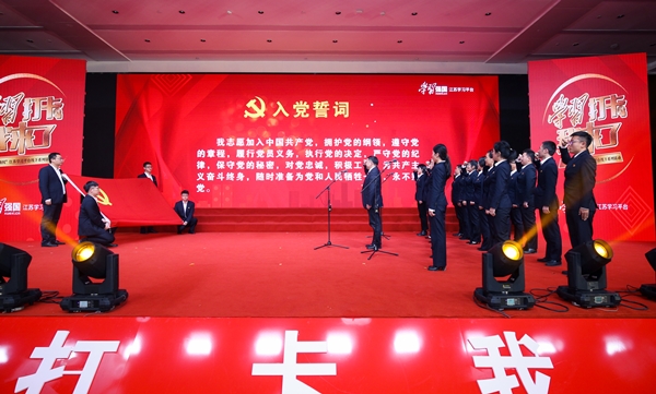 學(xué)習(xí)永無止境,時刻不忘初心。入黨誓詞,是黨員對黨和人民作出的莊嚴(yán)承諾。一代又一代中國共產(chǎn)黨人,面對鮮紅黨旗,右手握拳,一字一句許下錚錚誓言?,F(xiàn)場,東方集團(tuán)黨委書記、董事長張振國帶領(lǐng)黨員們重溫了入黨誓詞。