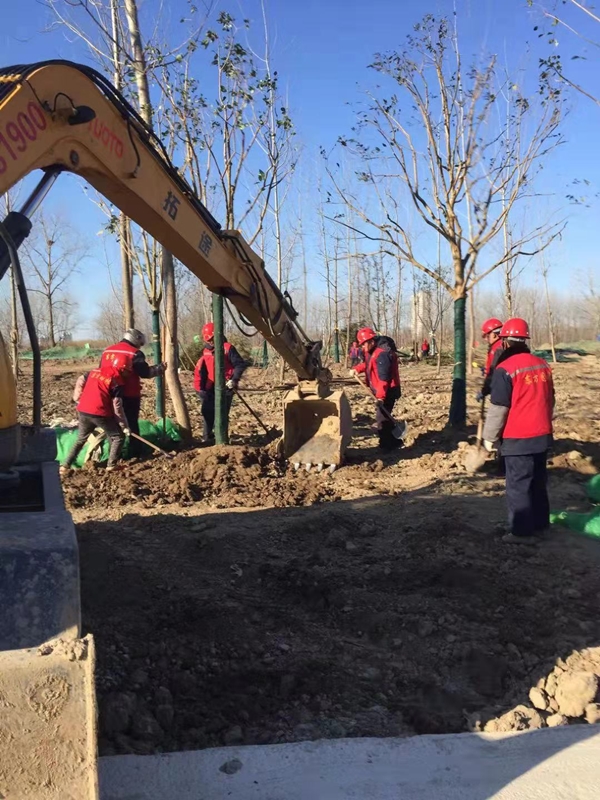 東方園林人為了讓節(jié)日里的城市更美麗,在堅(jiān)守奮戰(zhàn)中度過春節(jié)。170名園林人拼搏在新四軍文化林、東方公園、友誼公園、河濱公園等重點(diǎn)綠地項(xiàng)目。新四軍軍文化林工程項(xiàng)目上,工人們抓緊晴好天氣實(shí)施綠地地形整理、河道開挖、綠化栽植等,計(jì)劃325日前栽植各類樹木4700棵,確保工程盡早完工。為了營造平安祥和的節(jié)日氛圍,園林人每日里對(duì)46.7萬平方米的養(yǎng)護(hù)轄區(qū)進(jìn)行巡視、養(yǎng)護(hù)、維護(hù),及時(shí)更換公園內(nèi)所有電箱中的安全繼電器和保險(xiǎn)絲,防止發(fā)生安全隱患;每日定時(shí)巡查公園8次,提醒游客佩帶口罩和遛狗牽繩;每天對(duì)公園內(nèi)的座椅、健身器材、垃圾桶、衛(wèi)生間等設(shè)施定時(shí)消毒2次,保潔4次。