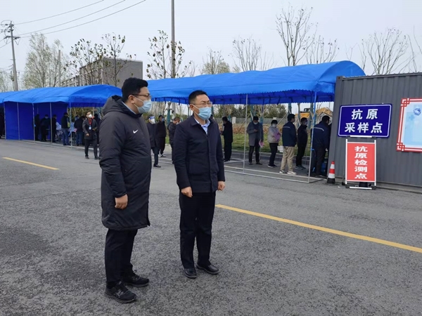 區(qū)管委會主要領(lǐng)導(dǎo)視察了貨車防疫檢測點和專用通道后,充分肯定了鹽城東方集團的工作成效,認(rèn)為東方本次突擊任務(wù)措施得力、完成出色,施工團隊不講客觀、直面挑戰(zhàn)、能打硬仗,為全區(qū)構(gòu)筑堅實的疫情防線作出了積極貢獻(xiàn)。