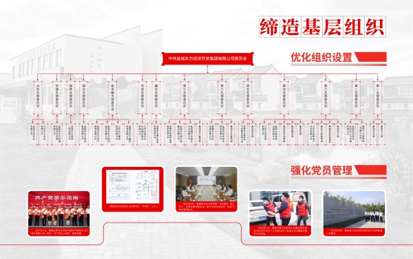 近年來(lái),鹽城東方集團(tuán)黨委充分發(fā)揮黨建促主業(yè)“333”工程的帶動(dòng)優(yōu)勢(shì),全力激活基層黨建工作“紅色細(xì)胞”,特別是圍繞黨建責(zé)任清單化、組織設(shè)置規(guī)范化、組織生活多樣化、陣地管理信息化、檢查考核制度化“五化”要求,全面推進(jìn)“黨建+標(biāo)準(zhǔn)化”工程,著力保障黨支部固壘強(qiáng)基、凝心鑄魂,確保以高質(zhì)量黨建引領(lǐng)企業(yè)高質(zhì)量發(fā)展。