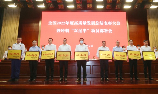 6月2日下午,鹽城經(jīng)開區(qū)2022年度高質(zhì)量發(fā)展總結(jié)表彰大會(huì)暨沖刺“雙過半”動(dòng)員部署會(huì)勝利召開,鹽城東方集團(tuán)成功蟬聯(lián)成色最重的綜合工作先進(jìn)獎(jiǎng),同時(shí)捧得綠色低碳發(fā)展工作先進(jìn)單項(xiàng)獎(jiǎng)。集團(tuán)黨委書記、董事長(zhǎng)、總經(jīng)理王旭東代表集團(tuán)登臺(tái)領(lǐng)獎(jiǎng)。這些獎(jiǎng)項(xiàng)的取得,充分體現(xiàn)了區(qū)黨工委、管委會(huì)對(duì)鹽城東方集團(tuán)全年工作的褒揚(yáng)和肯定,也激勵(lì)集團(tuán)上下“百尺竿頭更進(jìn)一步”,在國(guó)企高質(zhì)量轉(zhuǎn)型發(fā)展大潮中立標(biāo)桿、站排頭,為全區(qū)打造“一流開發(fā)園區(qū)、一流產(chǎn)業(yè)地標(biāo)”作出新的更大貢獻(xiàn)。