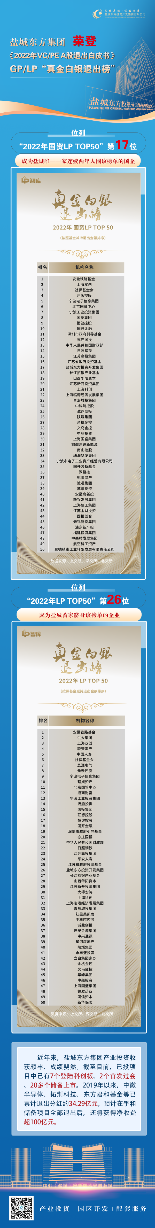 喜報!鹽城東方集團入圍GP/LP“真金白銀退出榜” TOP50