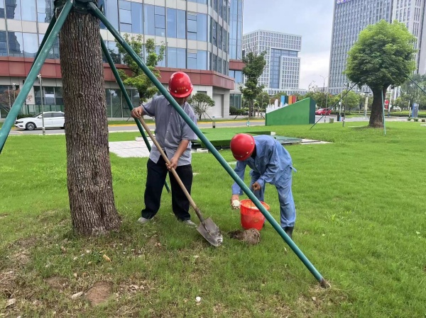 針對(duì)秋季病蟲(chóng)害發(fā)生特點(diǎn),東方園林緊抓有利時(shí)機(jī),提前安排實(shí)施,及時(shí)觀察監(jiān)測(cè),采取“以防為主、防治結(jié)合”方案,利用機(jī)動(dòng)噴霧器對(duì)樹(shù)木、草坪、綠化帶等進(jìn)行病蟲(chóng)害集中監(jiān)控防治,有效防治病蟲(chóng)害發(fā)生與蔓延。同時(shí),搶抓施肥的黃金時(shí)期,采用直接播撒的方式,對(duì)轄區(qū)苗木進(jìn)行集中施肥,特別是對(duì)部分長(zhǎng)勢(shì)弱的苗木進(jìn)行重點(diǎn)施肥,增強(qiáng)土壤肥力,保障園林植物呈現(xiàn)良好生長(zhǎng)態(tài)勢(shì)。