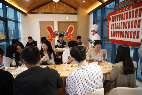 為了讓大家提前感受中秋節(jié)的團圓氛圍,本次活動設置了冰皮月餅DIY環(huán)節(jié)。甜品老師為大家詳細講解了手工月餅的制作流程,大家動手揉搓面團、分割餡料、包制月餅、壓模成型,現(xiàn)場一片繁忙,氣氛和諧融洽。品樂趣、話發(fā)展、敘情誼、聚能量,大家將對節(jié)日的祝福包裹進小小的月餅中,將對未來的展望融入進香甜愉快的節(jié)日氛圍里。