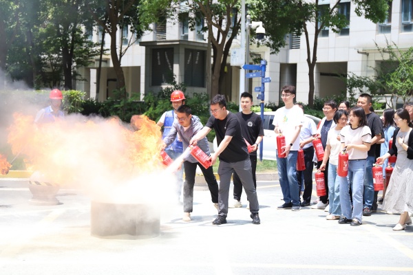 全體參訓(xùn)人員在集團(tuán)一樓廣場(chǎng)西側(cè)模擬火災(zāi)現(xiàn)場(chǎng),使用滅火器進(jìn)行了滅火實(shí)操演練。