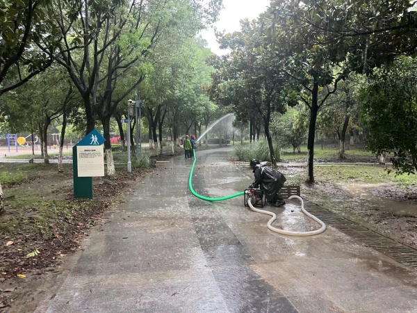 東方園林公司積極落實排查各公園及管護路段防汛工作,明確責(zé)任人加強巡查值守,進行各公園用電安全檢查;組織園林工人及時清理路段折枝、倒伏樹木,確保市民出行安全,對積水路段安排人員疏通下水道,做好清污排水等措施,排除雨水帶來的險情;對關(guān)鍵區(qū)域的配電箱和路燈進行斷電處理,以防泡水損壞及漏電危險;對公園廣場積水區(qū)域進行排澇,并對游園內(nèi)的設(shè)施、水體等進行檢查,及時排除安全隱患。同時,組織人員加強巡邏,全面落細落實各項防汛措施,堅決維護人民群眾生命財產(chǎn)安全,該公司共出動防汛應(yīng)急人員60余人,搶險巡查車輛6臺,抽水泵5臺。