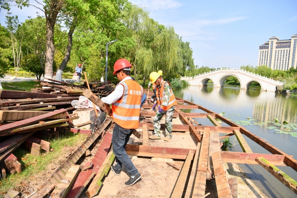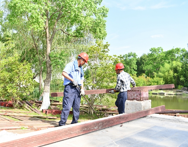 據(jù)了解,該工程于5月中旬開(kāi)工,計(jì)劃7月底前完工。為保證按期完成,項(xiàng)目團(tuán)隊(duì)倒排工期、科學(xué)調(diào)度人員,全力推進(jìn)建設(shè)進(jìn)度。施工期間,親水平臺(tái)將部分封閉,但園內(nèi)道路正常通行不受影響。為確保施工環(huán)保,所有高強(qiáng)度塑木材料將在工廠完成噴漆后再運(yùn)至現(xiàn)場(chǎng)安裝,避免對(duì)湖水造成污染。