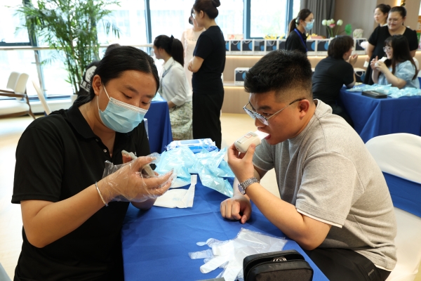 為了讓大家更直觀(guān)地了解自身口腔健康狀況,講座現(xiàn)場(chǎng)特別設(shè)置了數(shù)字化口腔檢查環(huán)節(jié)。醫(yī)護(hù)人員使用先進(jìn)的口腔3D掃描儀,為參與者進(jìn)行實(shí)時(shí)口腔掃描,通過(guò)高清顯示屏將牙齒狀況清晰呈現(xiàn),讓每個(gè)人都能親眼看到自己牙齒存在的齲齒、牙結(jié)石、牙齦萎縮等問(wèn)題。這種可視化體驗(yàn)讓參會(huì)人員深刻認(rèn)識(shí)到日??谇蛔o(hù)理的重要性,也幫助大家更有針對(duì)性地改善口腔健康問(wèn)題。