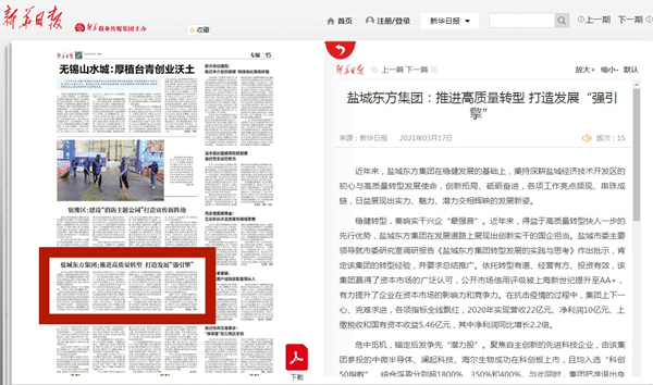 317日,《新華日報》第15版刊發(fā)《鹽城東方集團(tuán):推進(jìn)高質(zhì)量轉(zhuǎn)型 打造發(fā)展強(qiáng)引擎》,關(guān)注報道鹽城東方集團(tuán)近年來,緊緊圍繞高質(zhì)量發(fā)展要求,攻堅克難、勇毅篤行,在助力鹽城經(jīng)開區(qū)發(fā)展的同時,實現(xiàn)華麗轉(zhuǎn)身的高光時刻。