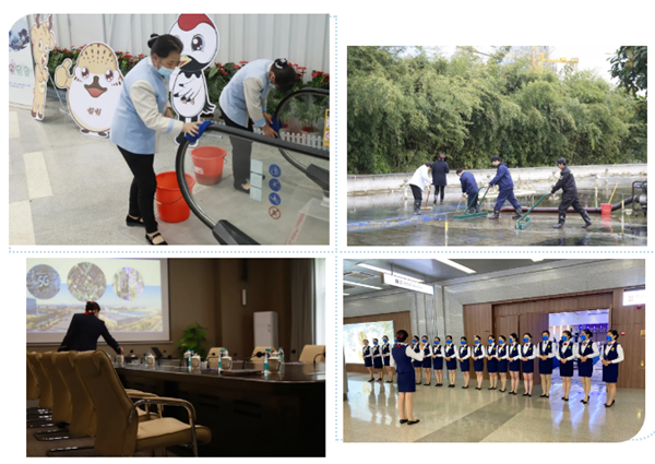 在籌備時(shí)間緊迫的前提下,作為全國(guó)物業(yè)協(xié)會(huì)成員單位的鹽城東方物業(yè)公司,金牌服務(wù)讓人如沐春風(fēng)。東方物業(yè)100余名工作人員齊心協(xié)力,每天從早上6點(diǎn)一直忙碌到深夜12點(diǎn),盡心盡責(zé)維護(hù)場(chǎng)館整潔有序?;顒?dòng)會(huì)場(chǎng)中,20位客服訓(xùn)練有素的禮儀服務(wù),形成了一道亮麗的風(fēng)景線;幾十位保潔人員,分散在各個(gè)角落,隨時(shí)保持場(chǎng)地干凈整潔;保安人員引導(dǎo)車(chē)輛停放井然有序,對(duì)場(chǎng)館進(jìn)入人員證件核驗(yàn)、雙碼檢查、體溫檢測(cè)等工作;幕后的工程人員時(shí)刻監(jiān)測(cè)保障設(shè)施設(shè)備正常運(yùn)行;為美化場(chǎng)館外部氛圍,東方物業(yè)調(diào)集人員使用消防水帶采用人工洗刷的模式,讓噴泉池底恢復(fù)潔凈狀態(tài)。